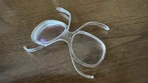 I/OXにレンズを仕込む前は、メガネ屋さんにお願いして専用のクリップを作成・調整してもらってた。
