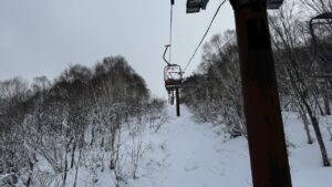 リフトに乗ると、まだまだ雪は少ない印象。クリスマス前後に一回降ったけど、それ以降は寒波らしいのは来てないしね。