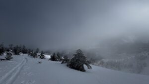 おもったより、雲が抜けないので、中尾根方面までは行かずに田代落ちすることに決定。