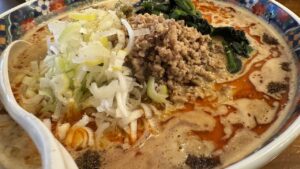 遅い昼ごはんは、フタツメの濃厚担々麺に唐揚げセット。
